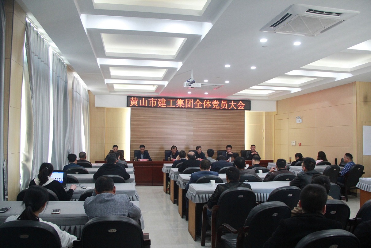 黃山市建工集團黨總支于2020年4月16日下午在集團公司11樓會議室召開全體黨員大會。參加會議的有市級黨建指導(dǎo)員康建平、集團黨總支班子成員及全體黨員,共56名。會議由黨總支副書記汪明星主持。