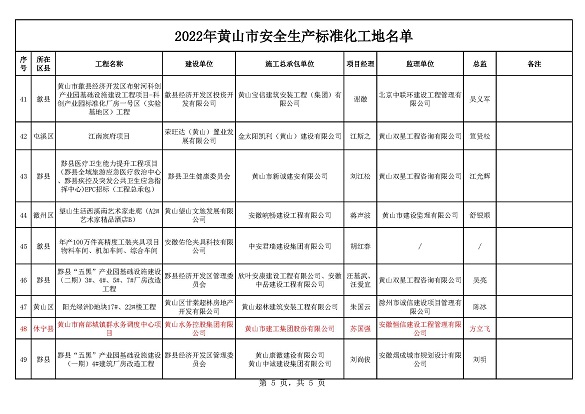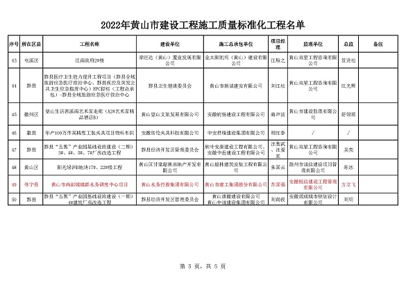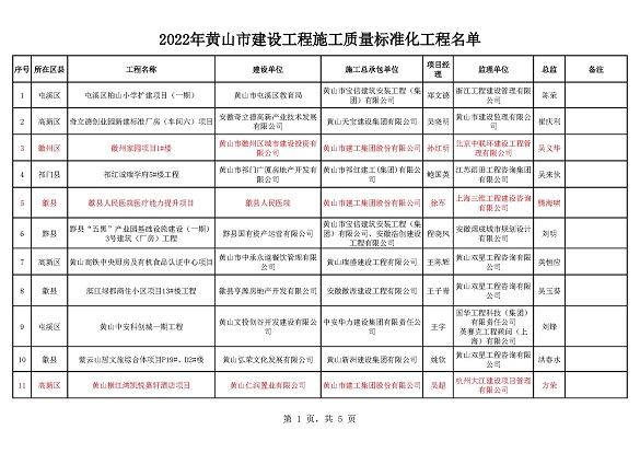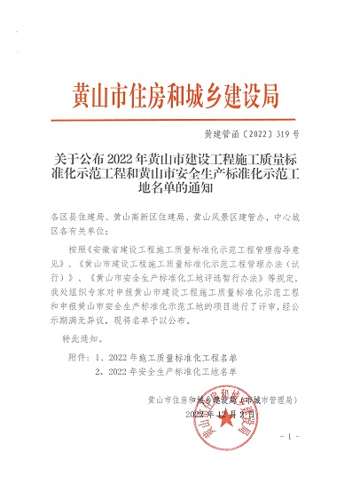 黃山市建工集團股份有限公司承建的徽州家園項目、歙縣人民醫(yī)院醫(yī)療能力提升項目、黃山橫江灣凱悅酒店項目、高鐵黟縣東站站前廣場及附屬配套工程、黃山市南部城鎮(zhèn)群水務調(diào)度中心項目、黃山北海路公交綜合大樓工程榮獲2022年施工質(zhì)量標準化工程和安全生產(chǎn)標準化工地的殊榮。