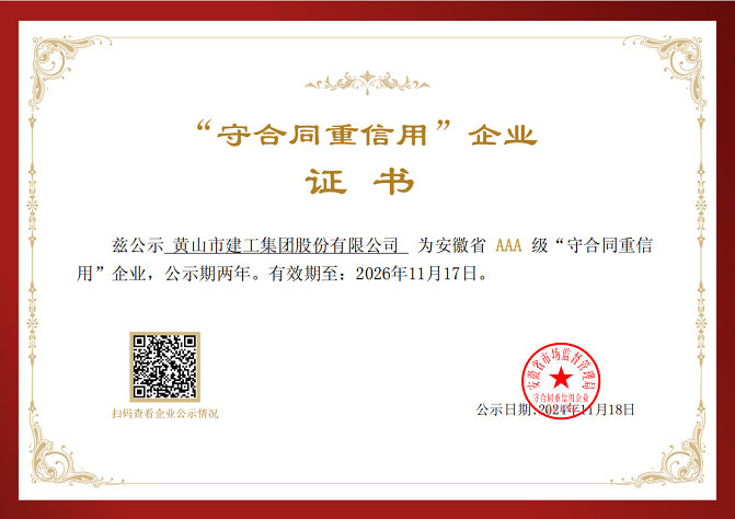 近日,黃山建工集團(tuán)憑借健全的信用管理體系、優(yōu)良的合同履約信用狀況和良好的市場(chǎng)信譽(yù)榮獲安徽省AAA級(jí)“守合同重信用”企業(yè)稱號(hào)。這一榮譽(yù)的獲得,不僅是對(duì)黃山建工集團(tuán)在企業(yè)經(jīng)營過程中始終堅(jiān)持誠信經(jīng)營的肯定,也是對(duì)黃山建工集團(tuán)在合同履行和信用管理方面所取得的顯著成績的認(rèn)可。
